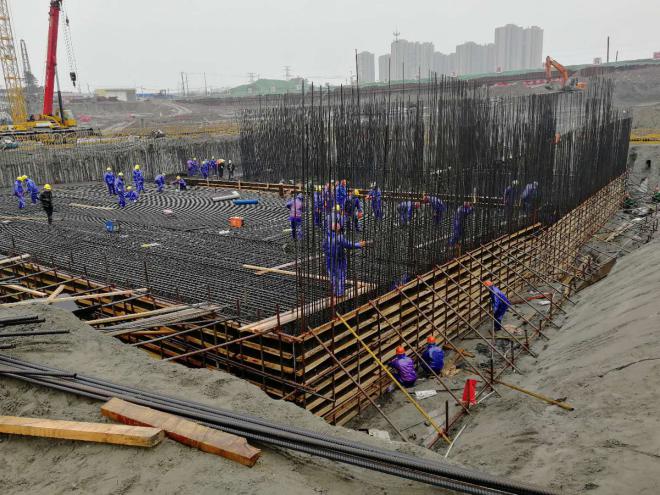 因?yàn)樗こ痰奶厥庑裕▍芜\(yùn)河水利樞紐工程必須在5月底主汛期來(lái)臨前完成水下部分施工,實(shí)現(xiàn)通水目標(biāo),搶抓工期成為貫穿整個(gè)施工過(guò)程的關(guān)鍵詞。自開(kāi)工以來(lái),現(xiàn)場(chǎng)最多的天氣便是下雨,據(jù)統(tǒng)計(jì),自12月以來(lái),雨水天氣達(dá)51天。為了確保通水目標(biāo)按期實(shí)現(xiàn),以及年底前完成主體工程計(jì)劃任務(wù),在連續(xù)下雨、前期因清淤困難減緩了施工進(jìn)度等不利情況下,自主體基坑開(kāi)挖后,項(xiàng)目部便開(kāi)始積極組織工人加班加點(diǎn),沒(méi)有過(guò)絲毫的放松和懈怠,在參建各方的一致努力下,最終將原計(jì)劃于2月25日澆筑的泵站底板提前到了2月16日實(shí)施,從而為后續(xù)施工爭(zhēng)取到了更多的機(jī)動(dòng)時(shí)間。目前節(jié)制閘1#、2#、3#底板及泵站已澆筑完成,待泵站工程搶出地面后,最后澆筑節(jié)制閘4#底板,進(jìn)而完成主體基面以下部分施工。目前現(xiàn)場(chǎng)施工人員接近三百人,我們搶抓有利天氣,有序進(jìn)行土方、管樁、水泥攪拌樁、主體結(jié)構(gòu)鋼筋、模板等平行施工作業(yè),工作面全面展開(kāi),后續(xù)總體施工進(jìn)度已處于可控狀態(tài),我們向著順利完成水下驗(yàn)收的目標(biāo)又邁出了堅(jiān)實(shí)有力的一步。